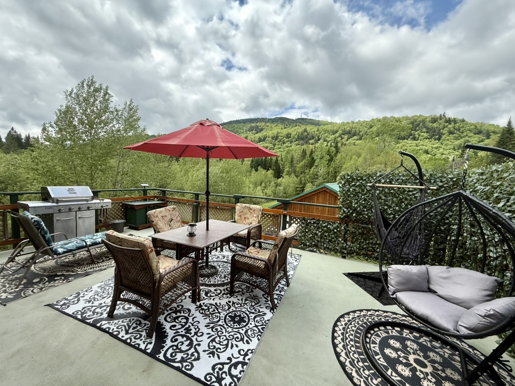 Découvrez les espaces communs chaleureux du Chalet du Hibou Voyageur, conçus pour la détente et la convivialité. Que vous vous détendiez sur la terrasse ou dans le salon, que vous prépariez vos repas ensemble dans la cuisine ou que vous profitiez du grand air, chaque espace est pensé pour sublimer votre séjour.